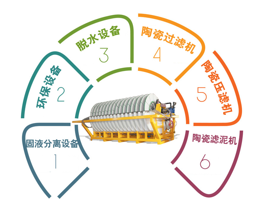 陶瓷過濾機、盤式過濾機目前已廣泛應(yīng)用于銅、鐵、金、銀、錫、鋁、鉛、鋅、鎳、鈷、鈀、鉬、鉻、銘、 硫、磷、煤、硅、石英、云母、錫土等精礦、尾礦脫水、化工行業(yè)氧化鋅、氧化鉛、硫化鋅、電解渣、浸出渣、爐渣 的脫水及環(huán)保污水泥脫水廢酸處理等。物料細度從-100目到-450目以及各種超細物料。